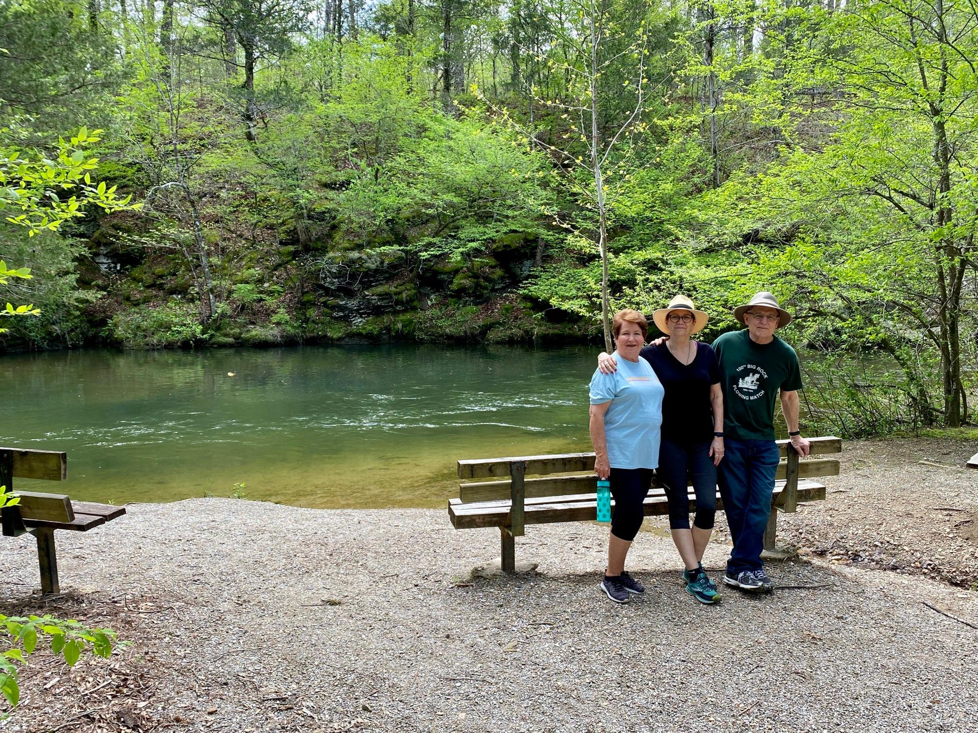 After a light breakfast of coffee and Kay’s homemade lemon blueberry scones on Friday morning, we drove to the Hot Springs Village pickleball courts where Shelley and Jeff witnessed their first game. After that, we did a short walk on Hot Spring Village’s Cedar Creek Trail.