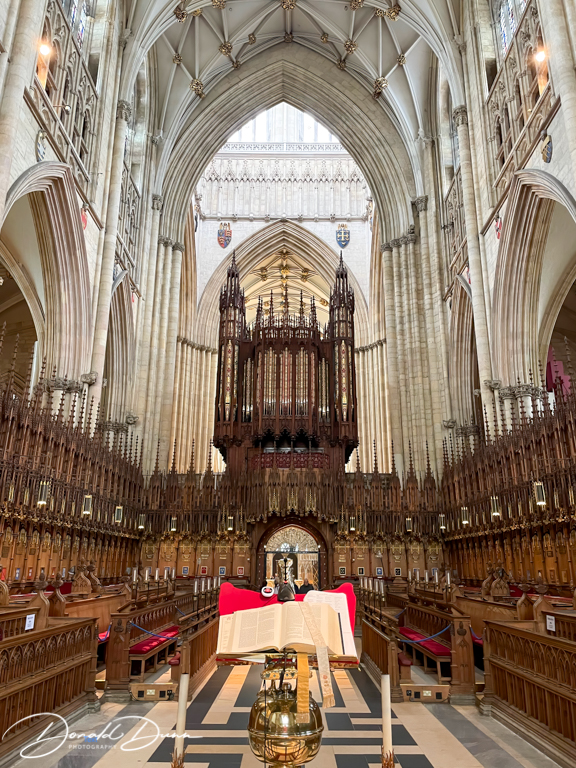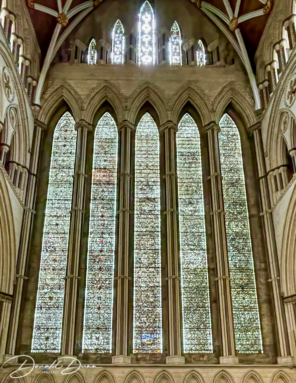 Next, we toured gothic York Minster, York’s huge 13th-century Gothic cathedral, York Minster, has medieval stained glass and 2 functioning bell towers. The original church was damaged in 1069 during William the Conqueror’s siege of the north, but the first Norman archbishop, Thomas of Bayeux, arriving in 1070, organized repairs. The Danes destroyed the church in 1075, but it was again rebuilt from 1080. The new structure was damaged by fire in 1137 but was soon repaired. The choir and crypt were remodeled in 1154, and a new chapel was built, all in the Norman style. Walter de Gray was made archbishop in 1215 and ordered the construction of a Gothic structure to rival Cantebury; building began in 1220. The north and south transepts were the first new structures; completed in the 1250s, both were built in the Early English Gothic style but had markedly different wall elevations. A substantial central tower was also completed, with a wooden spire. Building continued into the 15th century and declared complete and consecrated in 1472. Over the course of the next several hundred years until present, many preservation and restoration efforts were and continue to be undertaken.