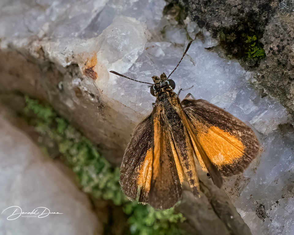 A Least Skipper appears on one the sea wall rocks and opened up for a photograph. The Least Skipper is tiny, about the size of one’s little finger fingernail.