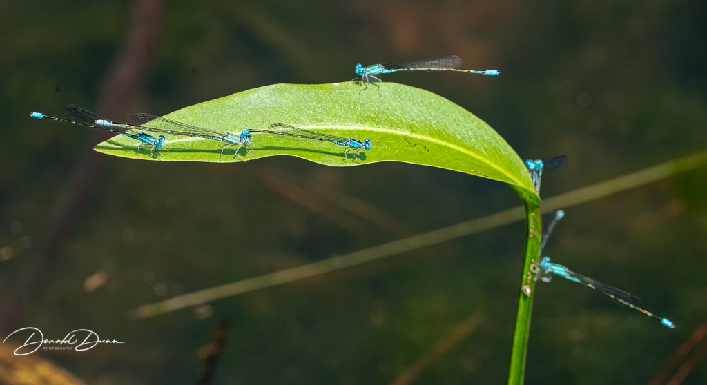 With light wind, I decided to check out the lake side of our place. There were Slender Bluet damselflies seemingly everywhere.