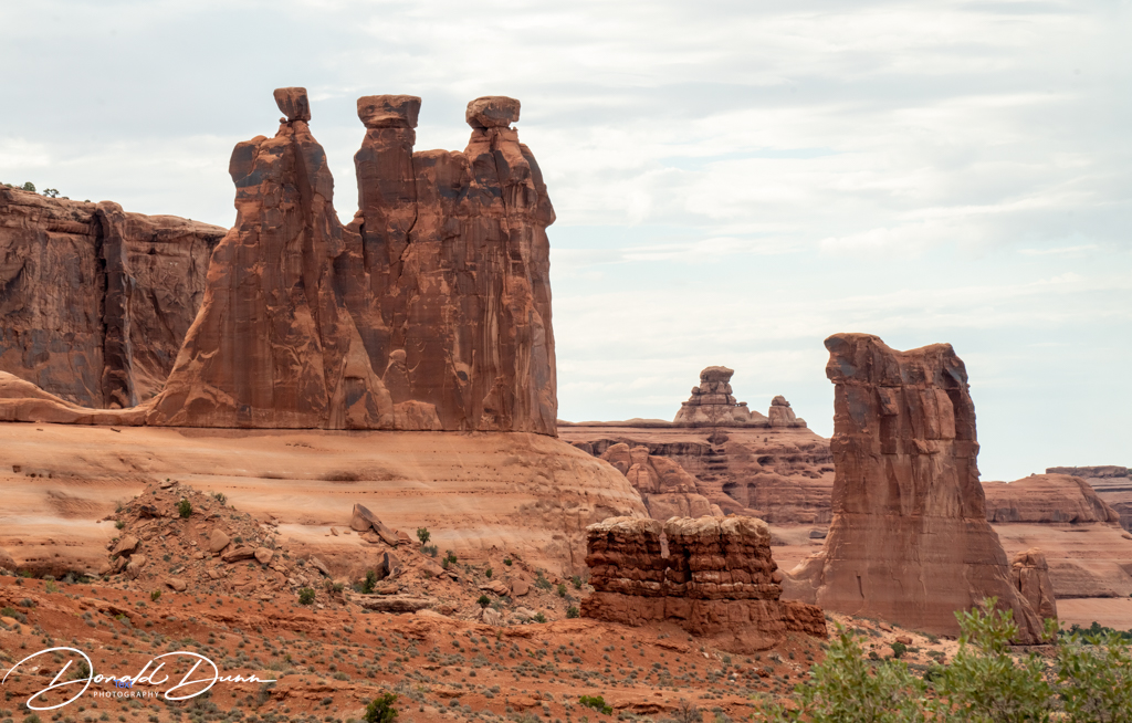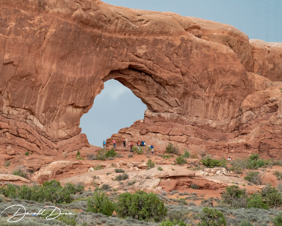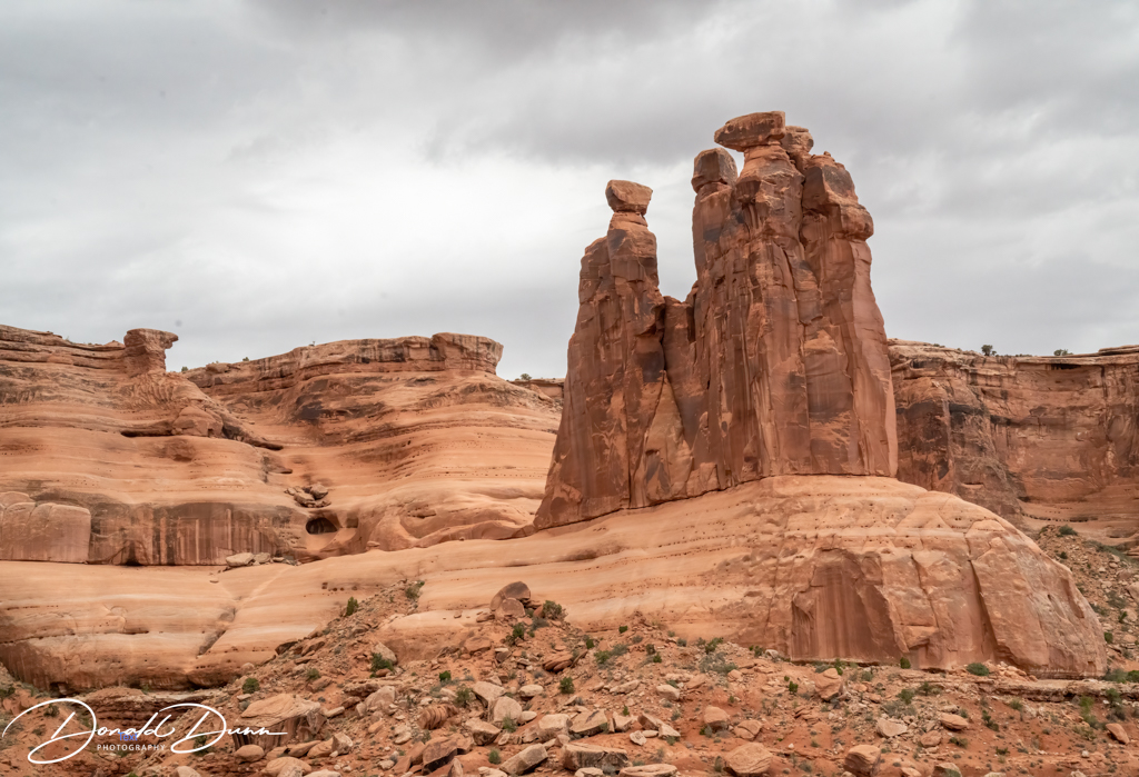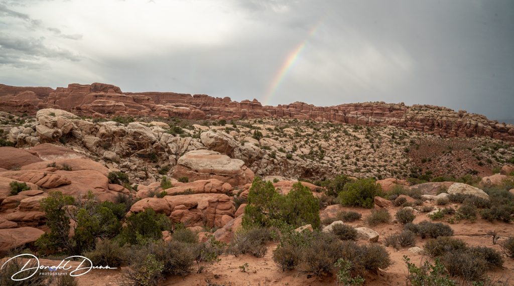 Later in the afternoon, we did a quick driving tour of Arches National Park; it was Kay’s second visit and my third. Knowing it would be crowded (you have to reserve a time slot to visit), we did not have any particular goals in mind—just sightseeing. That turned out to be a good thing as a storm rolled in and it rained on us most of the time we were there. We did manage to get a few photos between rain storms.