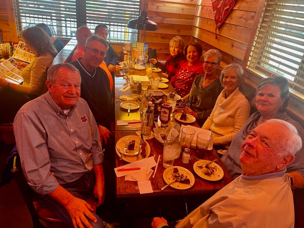 Saturday was a quiet day for us; no pickleball or golf or photography. Rain all day Sunday and Monday dictated activities, or the absence of them—no golf, no pickleball, no photography, and no happy hours—basically we stayed in the motorhome. I didn’t mind as it provided additional time for the shoulder injury to heal. And, it provided time to read (12 books since Christmas thanks to Jim Morris for author suggestions.) But, we did celebrate Mary Seitz’s birthday at Texas Roadhouse; rumor is that she turned 39!