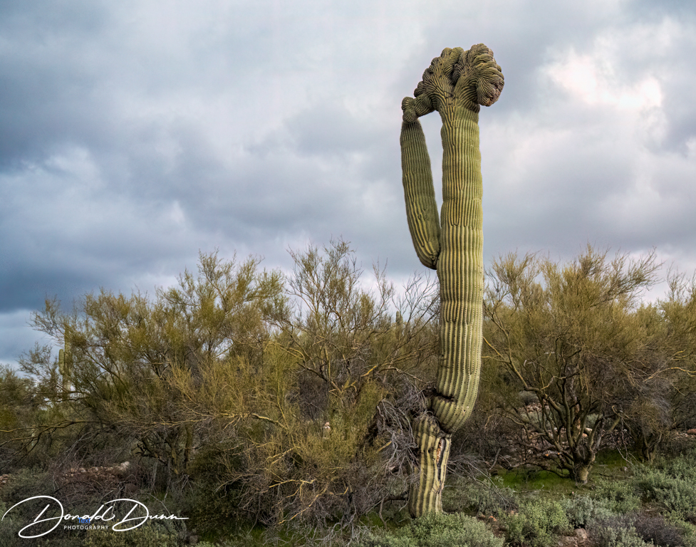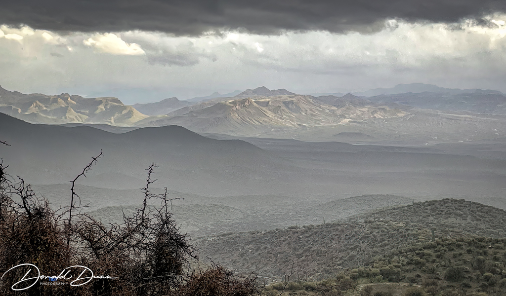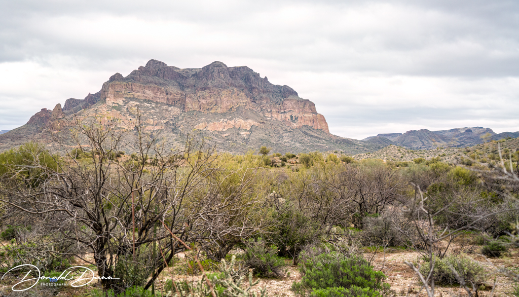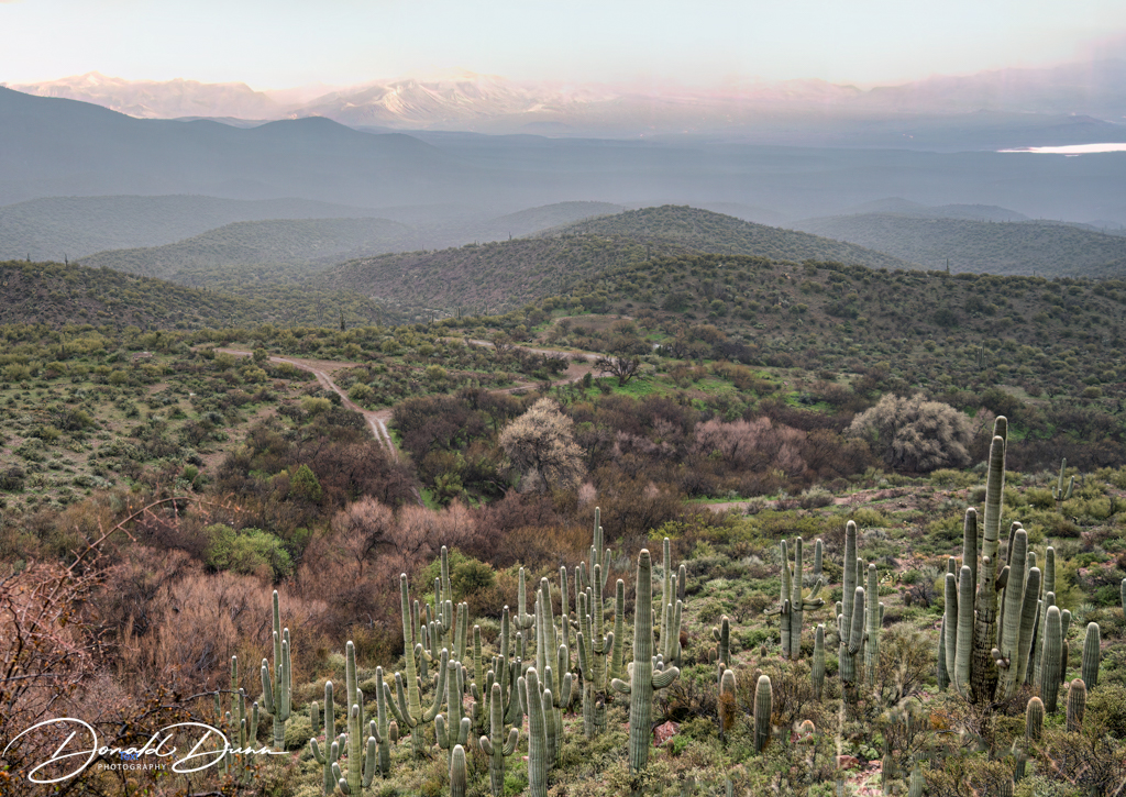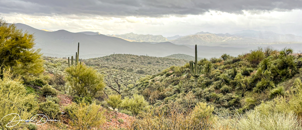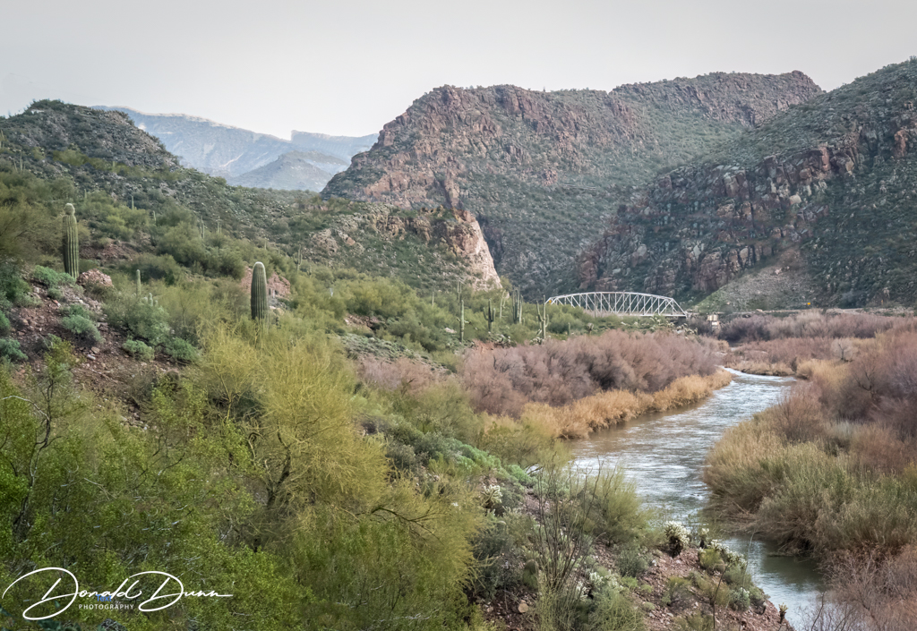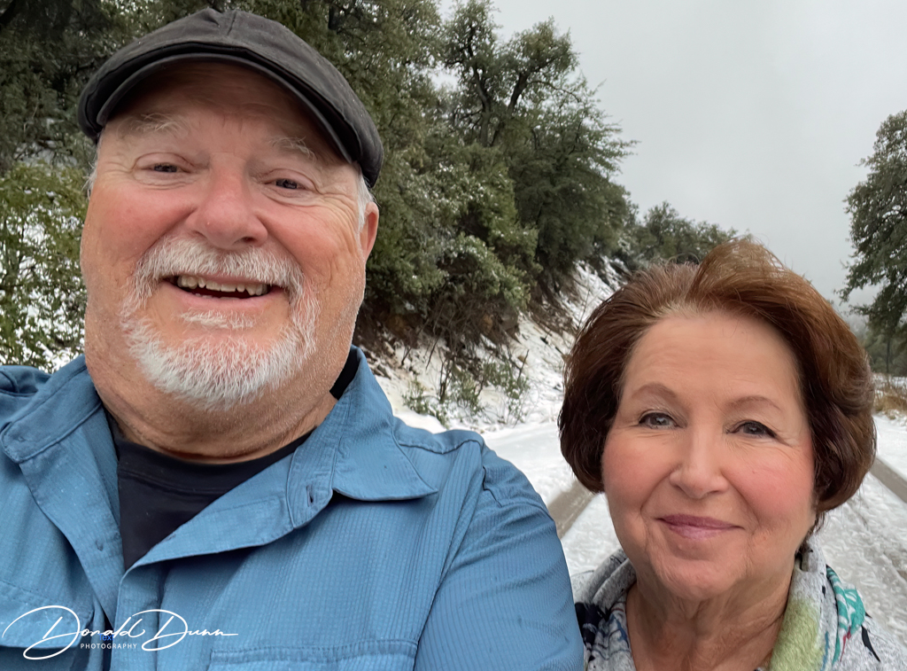 We did an interesting road trip on Tuesday, Valentine’s Day, driving north and east to Globe, Arizona, trying to find the Salt River Canyon Scenic Drive. Though we didn’t find the scenic drive, we did drive up into the mountains to snow level at about 5,000 feet. In fact, there was enough snow on the roads that we turned around. Regrettably, the rain, snow, overcast, and mist did not provide for great photos.