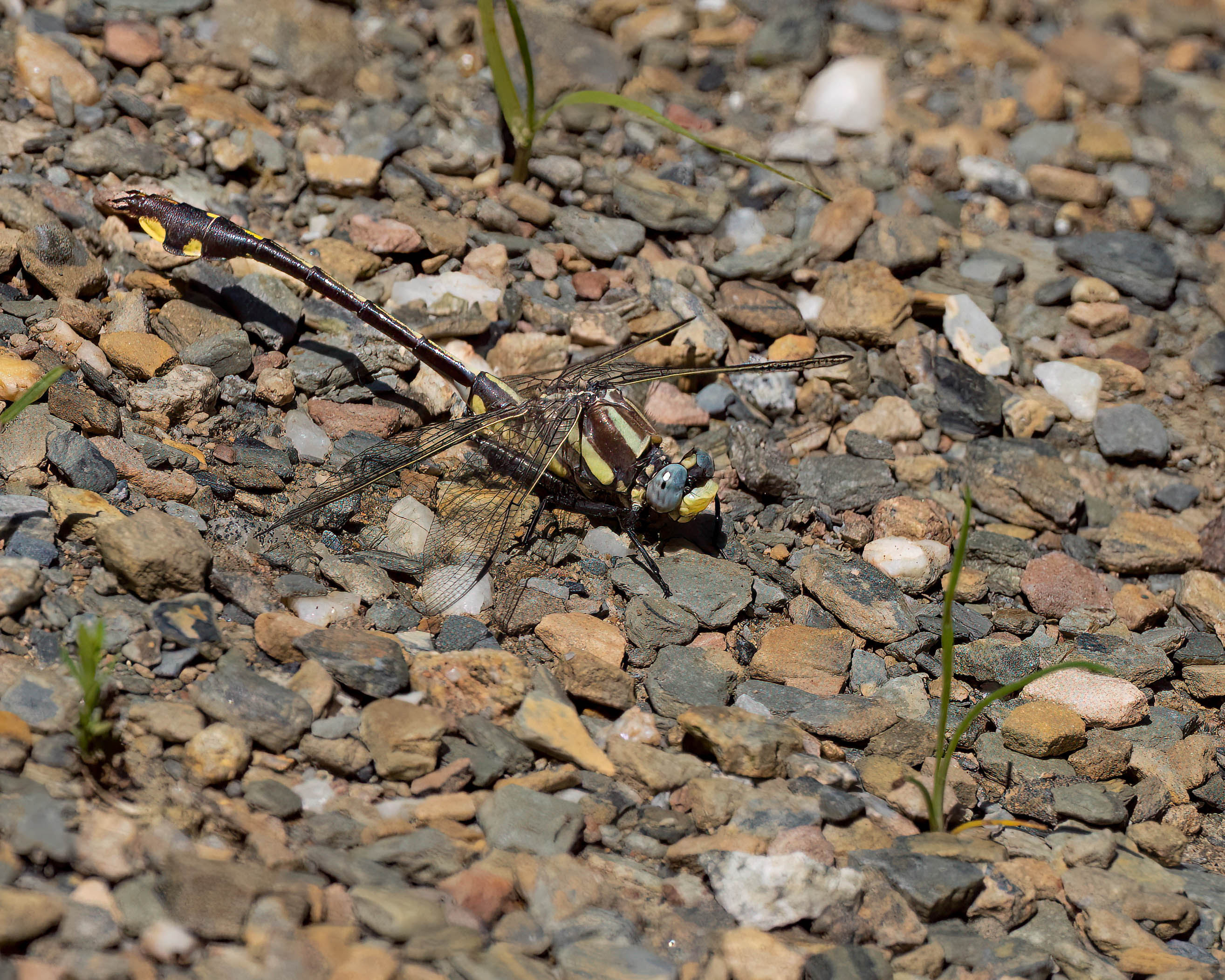 A Cedar Waxwing posed for a photo along with an Ozark Clubtail dragonfly.