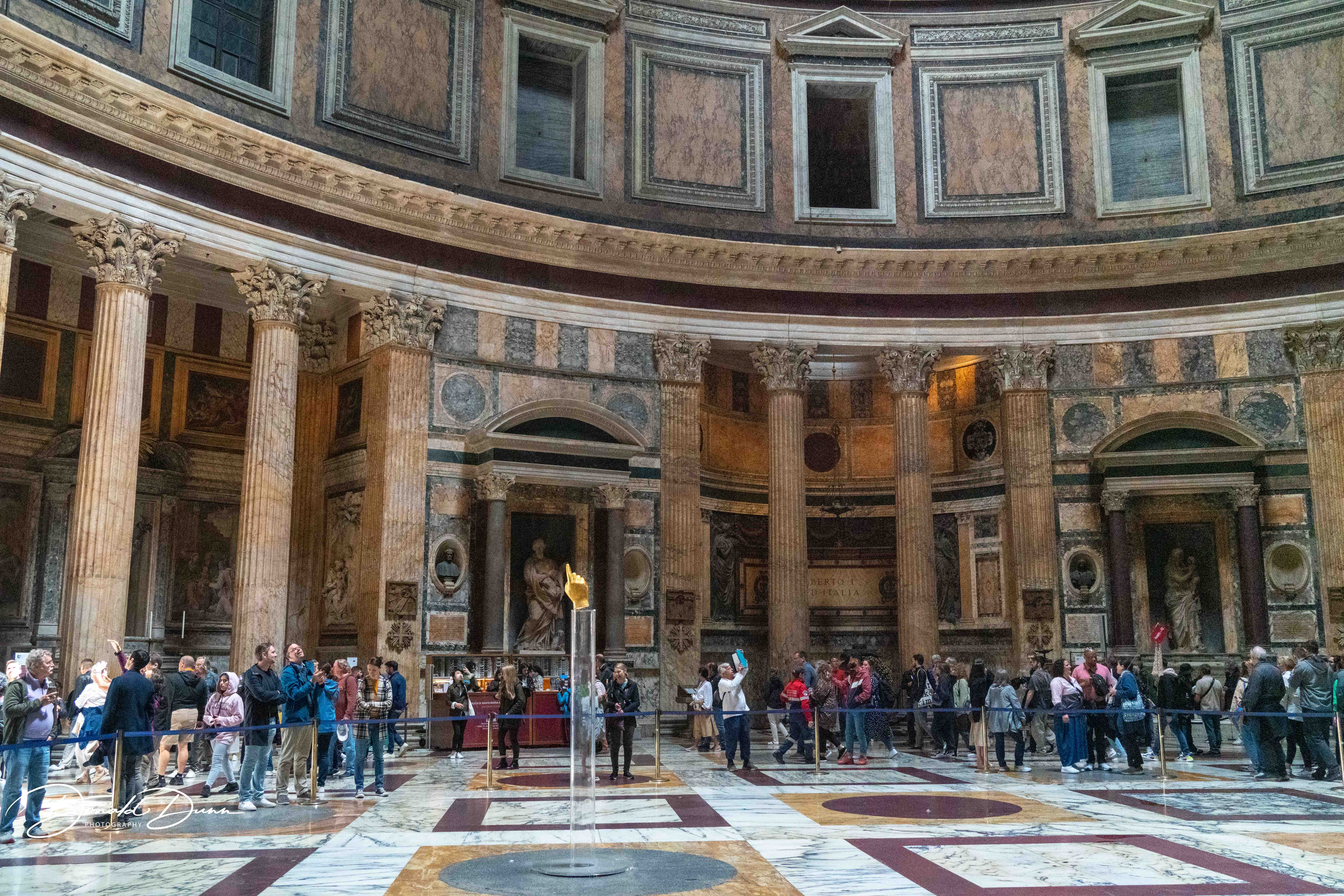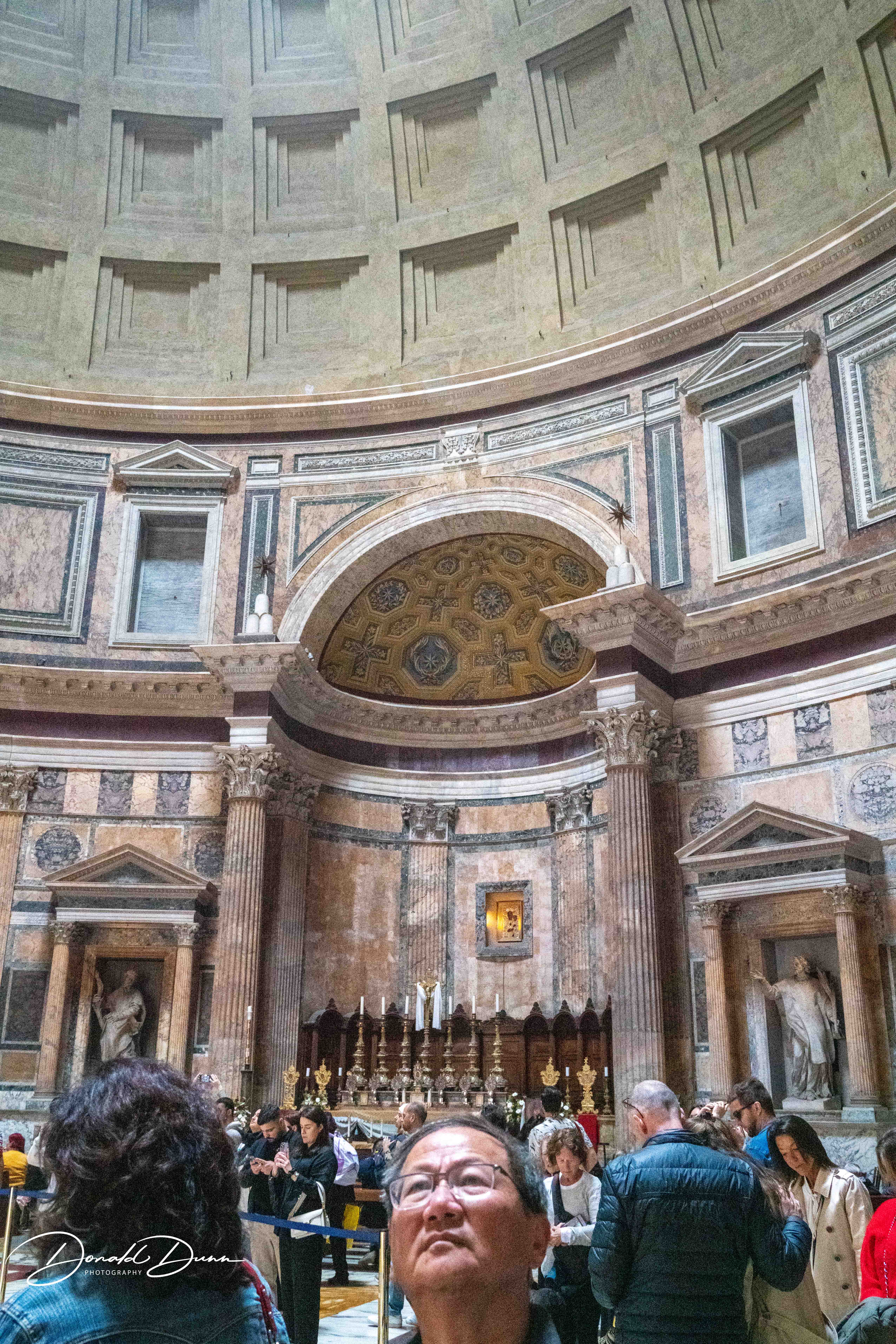 And then it was off to the Pantheon. The Pantheon is a former Roman temple and, since 609 AD, a Catholic church in Rome, Italy, on the site of an earlier temple commissioned by Marcus Agrippa during the reign of Augustus. It was rebuilt by the emperor Hadrian and probably dedicated around 126 AD. Built by Agrippa between 25 and 27 BC, the Pantheon was a temple dedicated to the twelve Gods and to the living Sovran. Traditionally it is believed that the present building is result of the radical reconstruction by Hadrian between 118 and 125 AD. It is the only ancient Roman building that has remained practically intact through the centuries. In 608 Pope Boniface IV had the remains of many martyrs removed from the Christian catacombs and placed in the Pantheon.