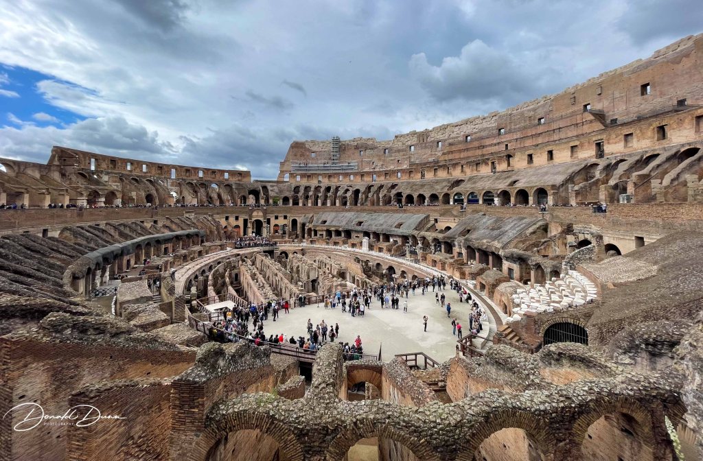 And then, we were off to tour the Colosseum. The Colosseum is an elliptical amphitheater in the center of Rome. It is the largest ancient amphitheater ever built, and is still the largest standing amphitheater in the world, despite its age. Construction began in 72 AD and was completed in 80 AD. The three emperors (Vespian, Titus, and Domitian) who were patrons of the work are known as the Flavian dynasty.