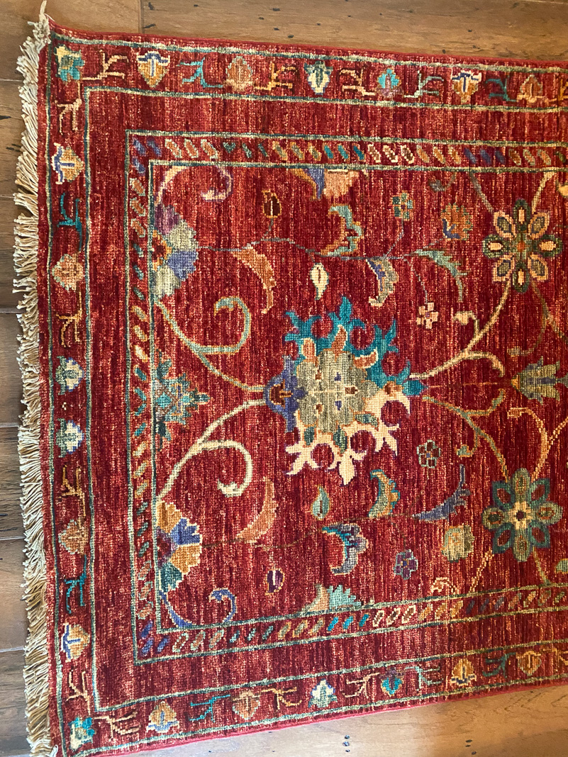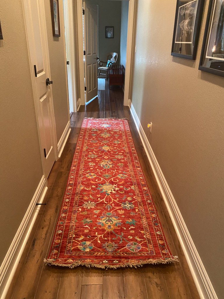 And also on Tuesday, I had a 6-weeks follow-up visit with the orthopedic surgeon. She seem pleased with the healing progress, and especially the gain in range-of-motion; she approved of my walking/hiking, sleeping in a bed, pitching a golf ball less than 100 yards and putting, and a few other physically light items. Most importantly, the sling was no longer required, and that was a big deal! Kay’s hand sewn Turkish rug was delivered on Friday. It was even more beautiful than she remembered. She picked it from a sample rug at the Turkish rug factory near Ephesus when we were on our “Journeys of Paul”Mediterranean cruise.