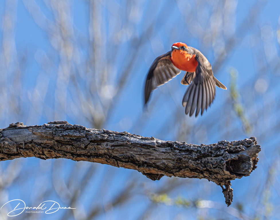 A beautiful Vermillion Flycatcher kept darting up to catch an insect.