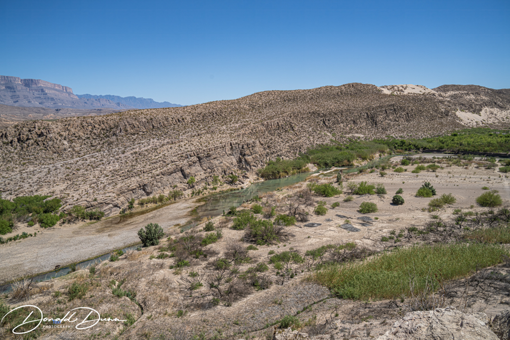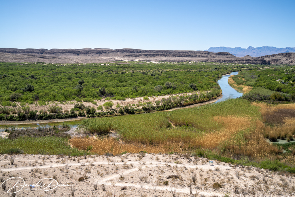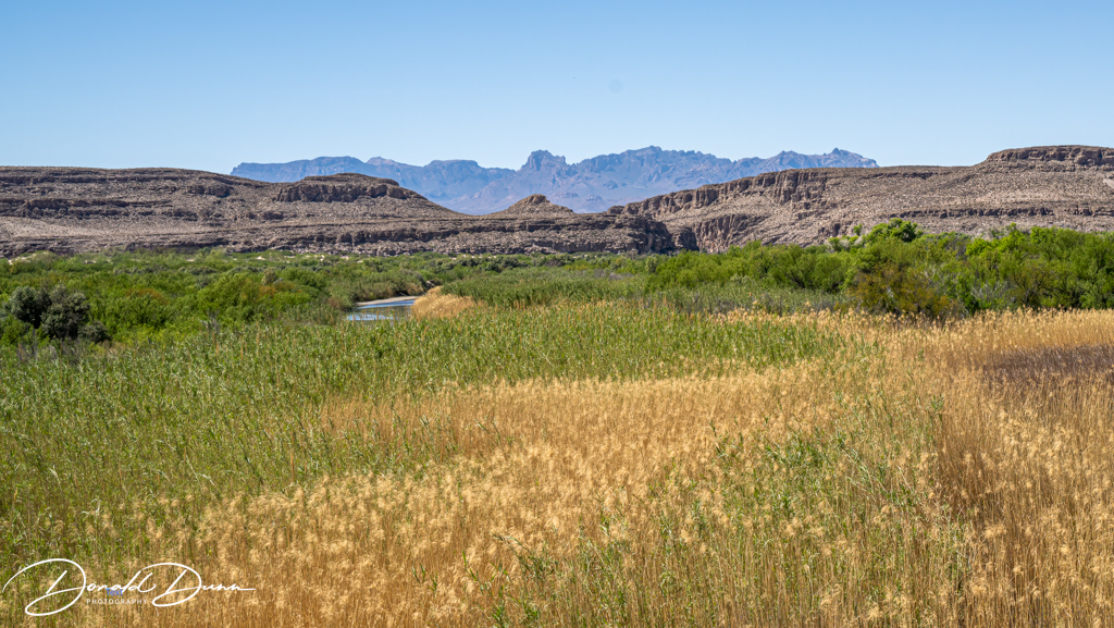 The trailhead was across the campground road, and parking for hikers was at least a quarter mile away! The first part of the trail is a boardwalk over a small pond that showcases riparian plants and animals. The trail proceeds up and around a small ridge that has a 360-degree view of the Rio Grande, the Sierra del Carmens in Mexico, and the Chisos Mountains in the park. It was a landscape photographer’s paradise.