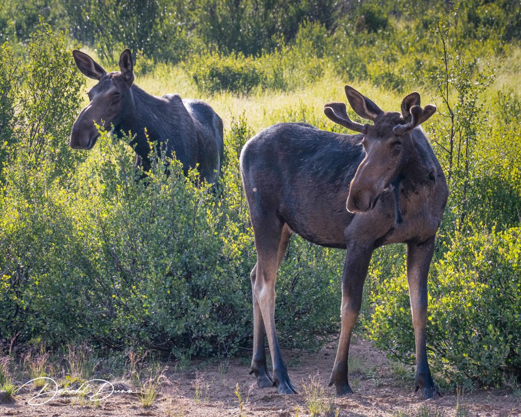 We began Thursday morning with coffee for me and Cappuccino for Kay; but we both opted out of a full breakfast since we were traveling. We drove south and between Ouray and Silverton, we came upon 4 moose browsing nonchalantly beside the highway. We were on the wrong side of the highway, but a short drive and turn-around allowed Kay to snap several photos, and I was able to take a few, shooting through her open window.
