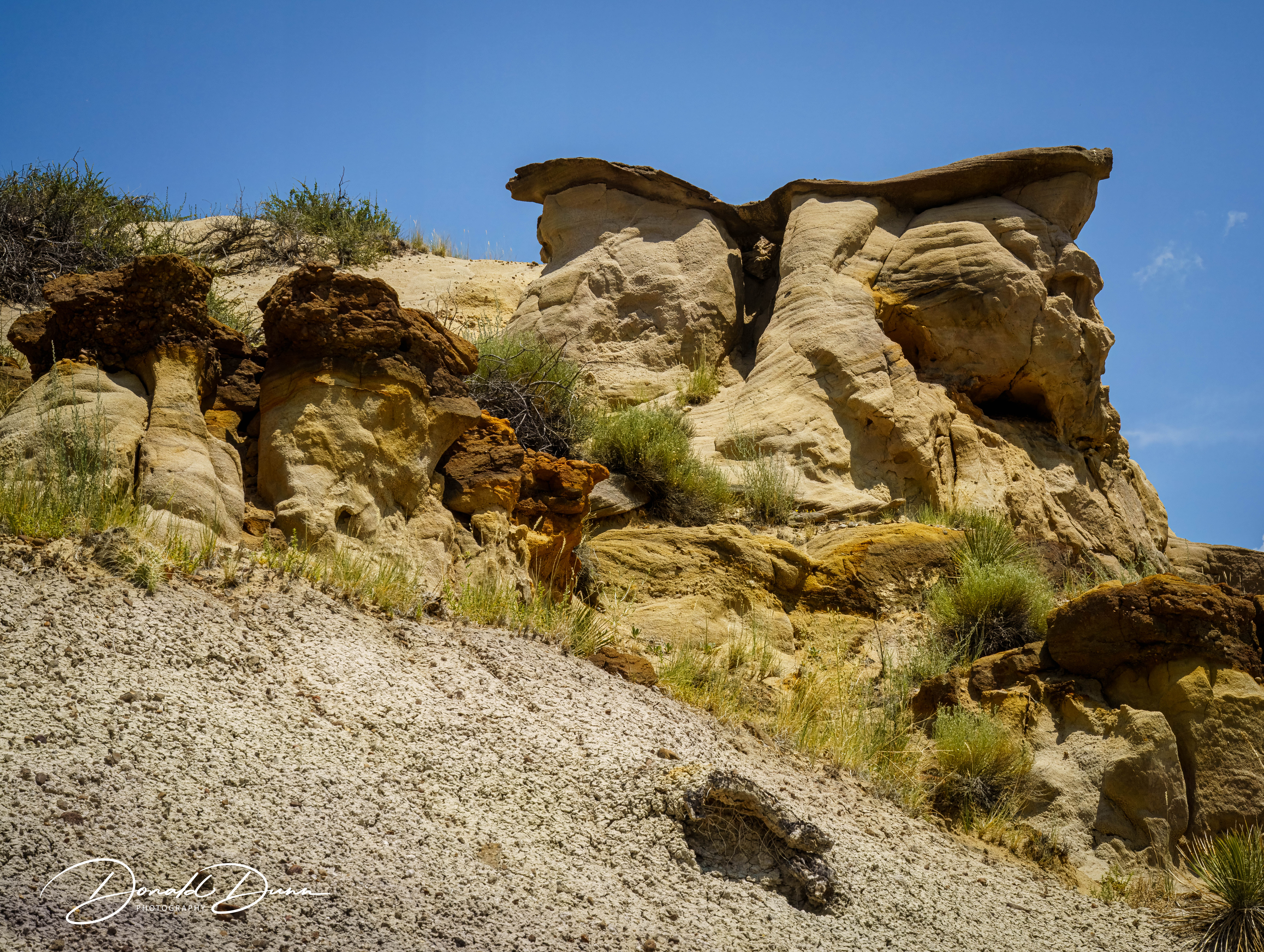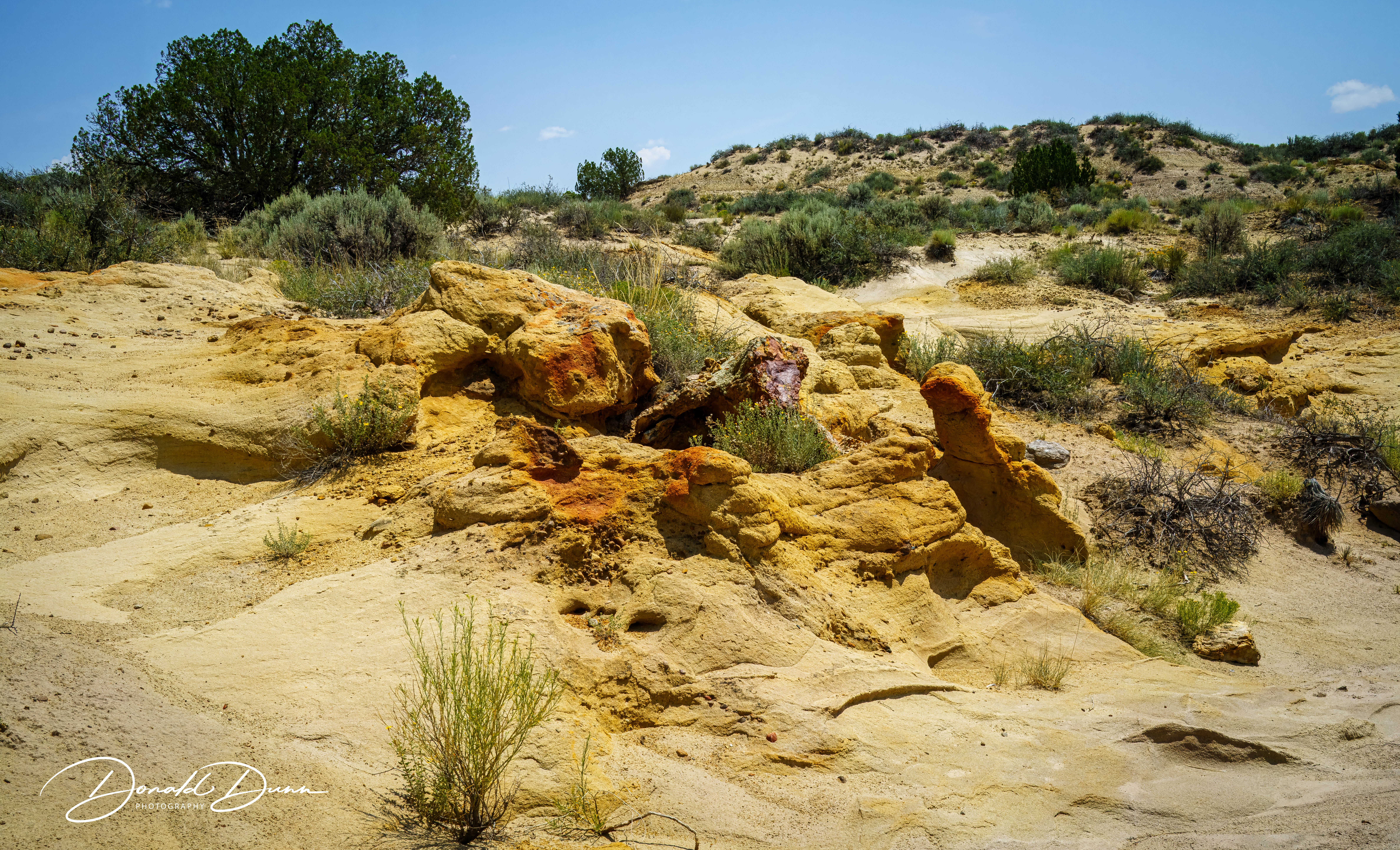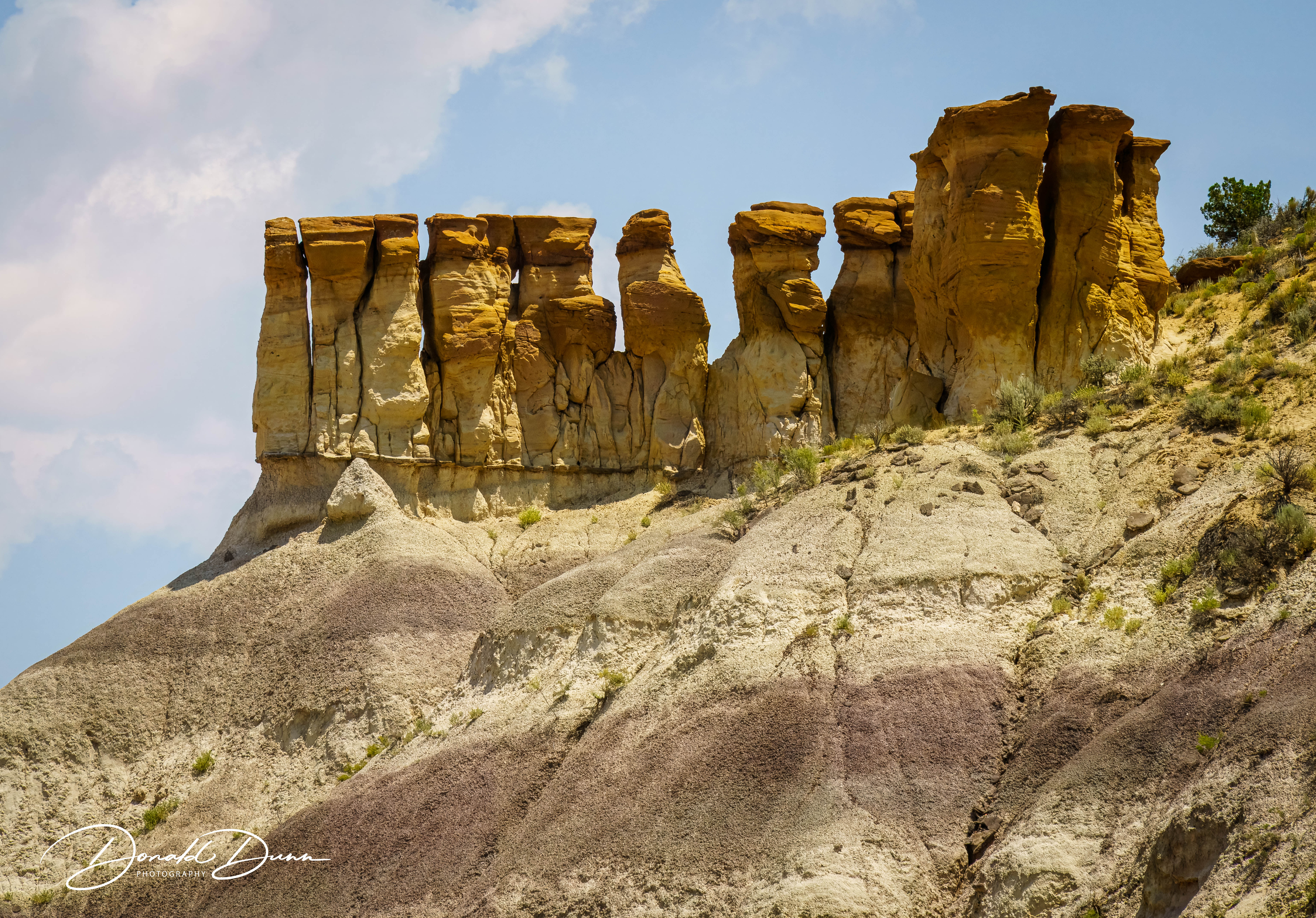 Continuing South on the Million Dollar Highway, we drove past Silverton, and then Purgatory Ski Resort to Durango. Plans were to stop and tour Durango, but like other towns in the San Juan Mountains, it was commercialized and crowded. At that point we opted to continue south, bypassing Farmington, New Mexico, headed to the Bisti/De-Na-Zin Wilderness, a rolling landscape of badlands which offers some of the most unusual scenery found in the Four Corners Region. (I had planned to travel to this area in the fall, but since we were so close, we opted to tour the area on our way home.)