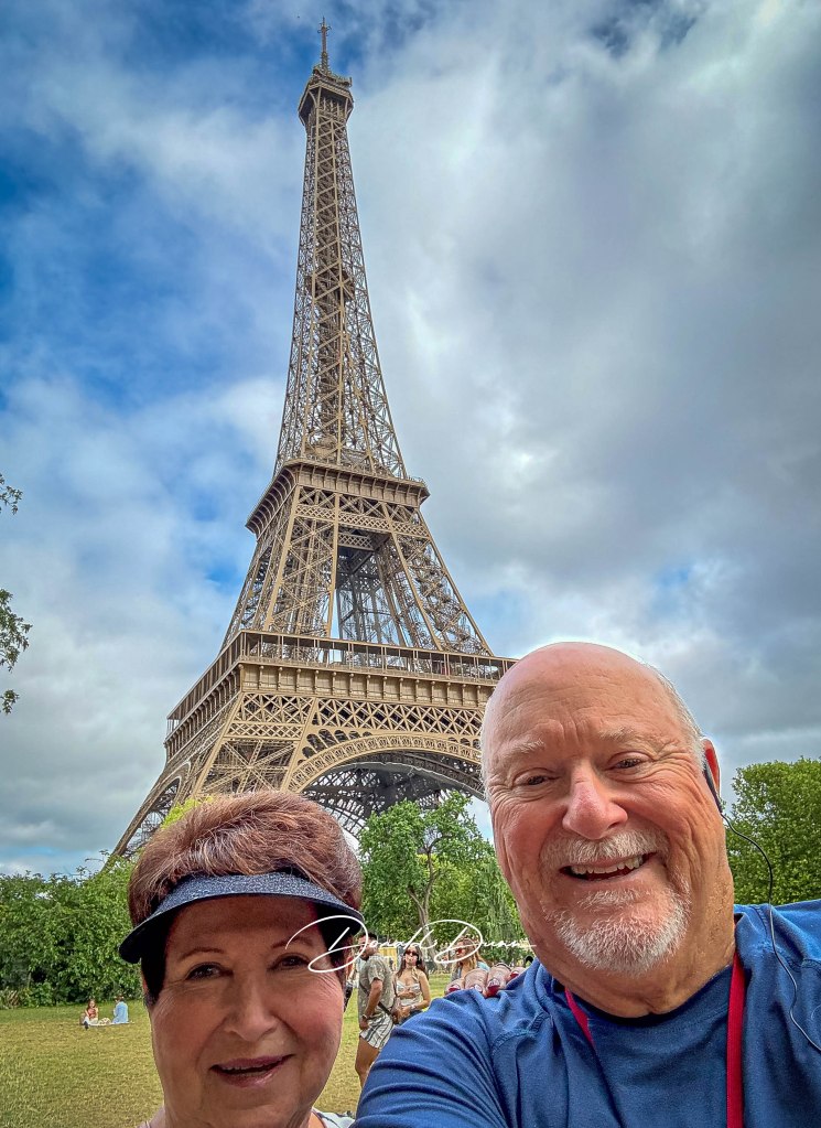 At 6 o’clock Sunday morning, we were in queue for the hotel’s breakfast buffet, just as the restaurant was opening. First order of business was a cup of latte for each of us, followed by select items from the simple but very good buffet. And then after a return to the room to prepare for the day’s activities, we gathered with folks from several tour groups to await instructions for our morning tour, Panoramic Paris. The bus tour included windshield views of iconic landmarks such as the Champ-Elysees, Arc de Triomphe, and Les Invalides.
