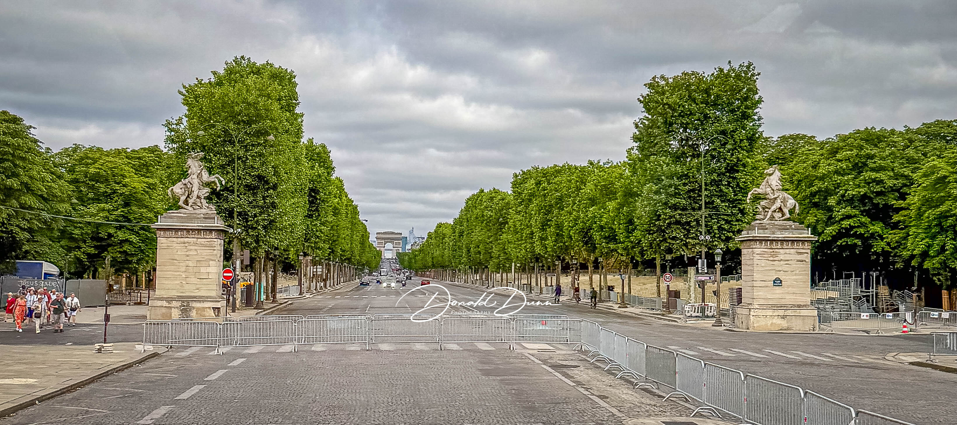 At 6 o’clock Sunday morning, we were in queue for the hotel’s breakfast buffet, just as the restaurant was opening. First order of business was a cup of latte for each of us, followed by select items from the simple but very good buffet. And then after a return to the room to prepare for the day’s activities, we gathered with folks from several tour groups to await instructions for our morning tour, Panoramic Paris. The bus tour included windshield views of iconic landmarks such as the Champ-Elysees, Arc de Triomphe, and Les Invalides.