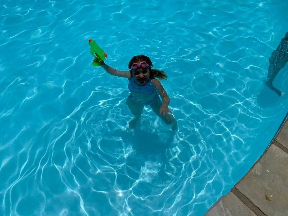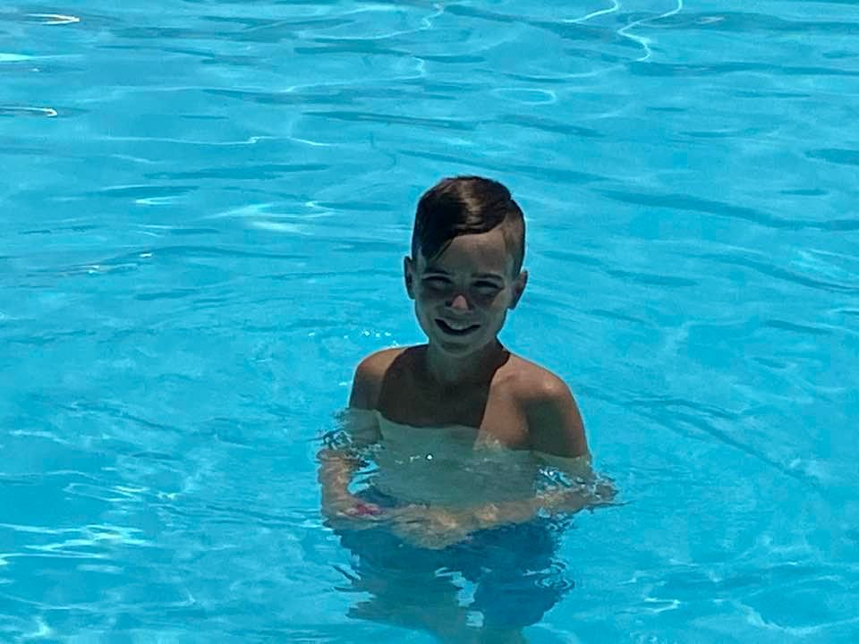 The kids woke up in a pleasant mood Thursday morning, and remained quiet and inactive for an hour or so. A quick breakfast was followed by a full day of activities. Kay and Ridge went to Diamante for pickleball while Aker and I remained at the house to water the plants and “play” outside. Ridge is becoming a formidable pickleball player, and got to play with and against the US Senior Olympic champion and Diamante Tennis pro, Geoff Hodsdon. Geoff used the opportunity to teach Ridge about the game. Aker enjoys watering the plants and admires the beautiful colors. After an active morning, the kiddos had lunch, and then were off to the pool with Kay where they had a great time. Evening came quickly, and after quieting down it was bedtime for all of us.