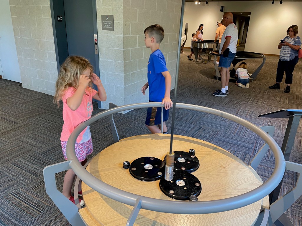The grands and I traveled to Mid-America Science Museum in Hot Springs Friday morning after breakfast. With over 100 hands-on exhibits, there were enough activities to keep Ridge and Aker busy for a couple of hours.