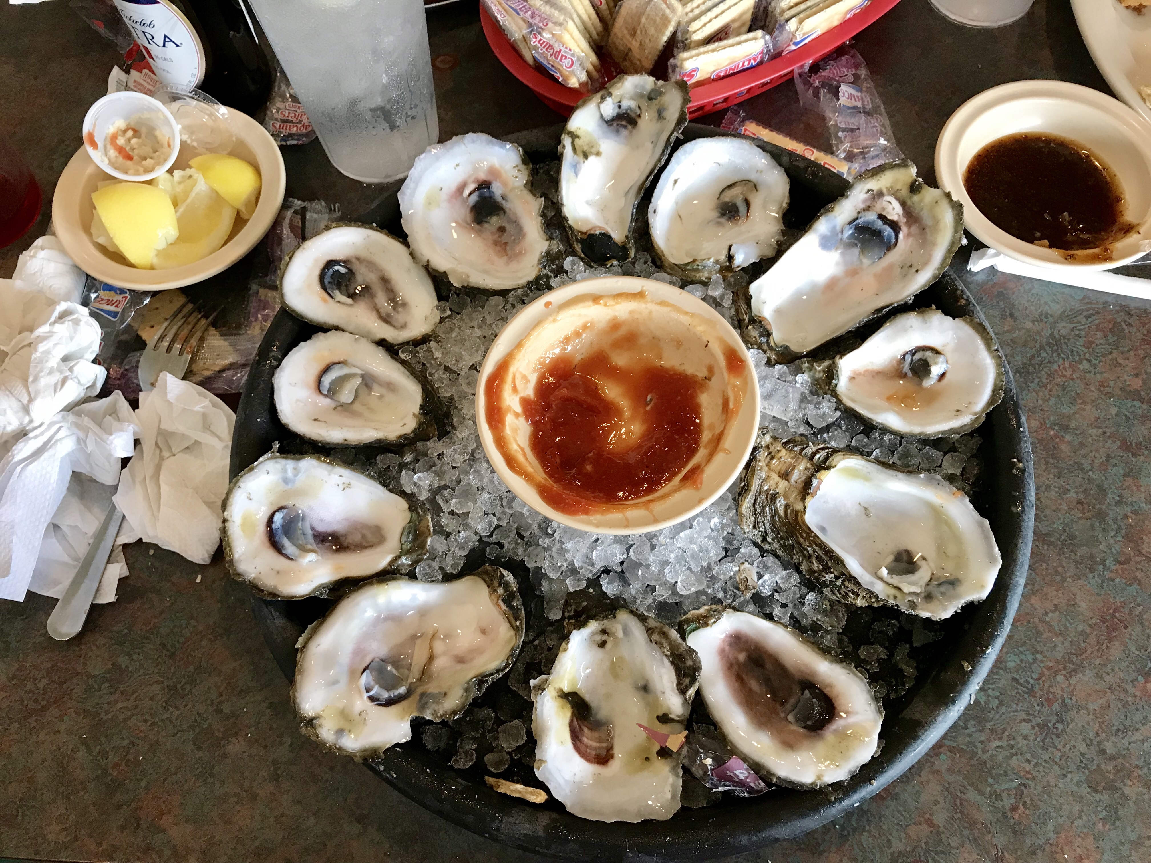 We had nothing planned today. After a late start we drove a roundabout way to Abbeville for a last meal at Shucks. The meal consisted of shrimp salad and gumbo for Kay and fried oysters for me, topped off with a large serving of bread pudding. Interestingly, the bread pudding was very good, and the butter rum sauce tasted exactly like mine! Returning to the motorhome via rural roads, we witnessed one crawfish pond after another, and many were being harvested as we drove by.