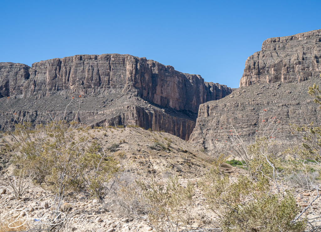 After Cerro Castellan, we hiked a short trail to view Tuff Canyon. Here, Blue Creek, fed by rains in the distant Chisos Mountains, has carved a spectacular canyon through layers of volcanic tuff and basalt.