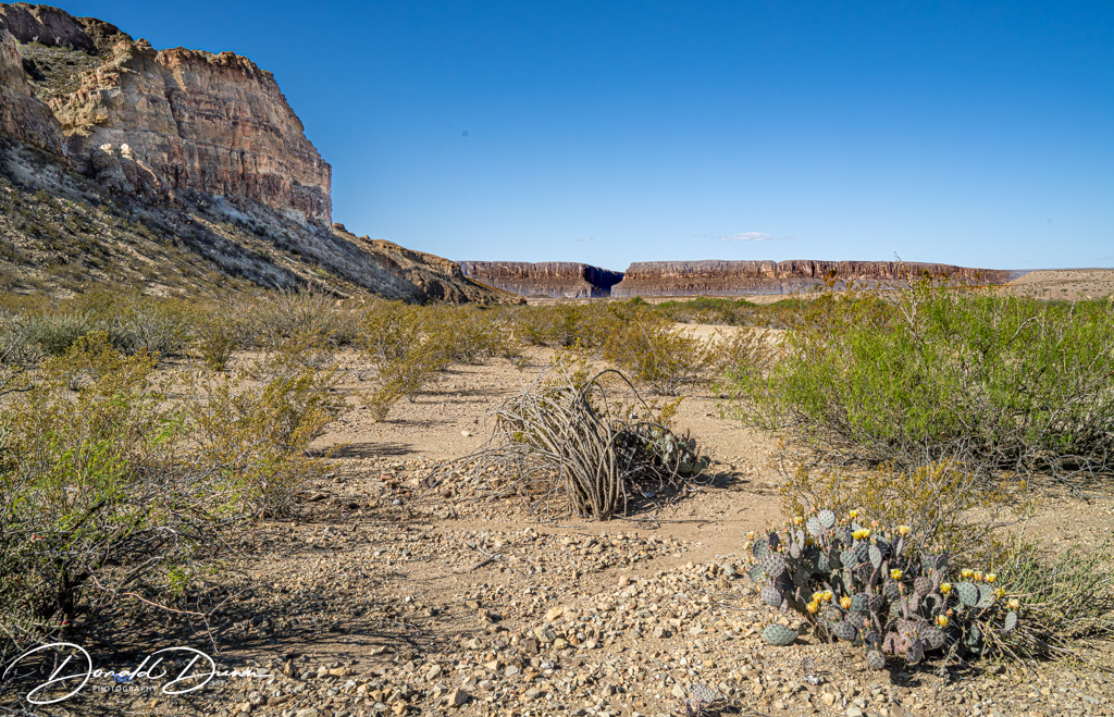 After Cerro Castellan, we hiked a short trail to view Tuff Canyon. Here, Blue Creek, fed by rains in the distant Chisos Mountains, has carved a spectacular canyon through layers of volcanic tuff and basalt.
