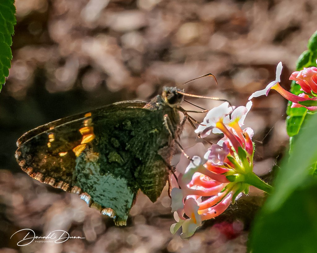 The gardener returned on Saturday and placed mulch on the front beds, and removed gravel to expand the butterfly garden. Removing the gravel really saved my back! Six bags of top soil were dumped in the newly cleared garden. Last year’s garden, though smaller, attracted 41 species.