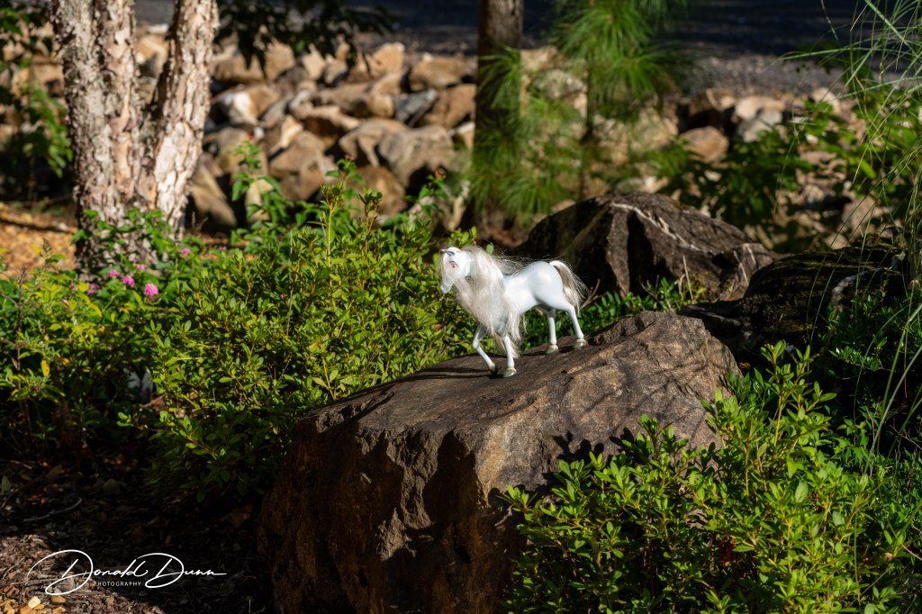 And out of nowhere, this miniature white horse showed up on one of the giant quartz rocks.